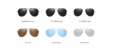 Available in 6 colors: Black/Black Gray, Gun/Black Gray, Gold/Black Gray, Tea/Tea, Silver/Blue, Silver/Silver